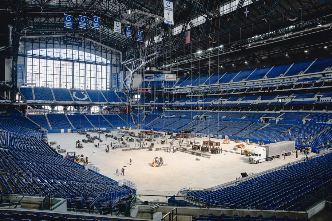 One of the biggest distinctions this year was the improved setup timeline. Despite the challenge of a tight schedule—with the Indianapolis Colts playing in Lucas Oil Stadium just prior and Taylor Swift’s stage needing to be loaded in afterward—EventEQ handled the load-in process with notable efficiency. The team gained access to the venue at midnight on Monday and successfully completed the setup by Wednesday’s first show. By coordinating a phased approach where rigging teams began their work at midnight, followed by lighting and LED teams at 8:00 AM, the process ran ahead of schedule. Compared to last year, where the crew was navigating these logistics for the first time, 2024’s setup ran smoother, with experienced team members leveraging lessons learned to save valuable time at every stage.