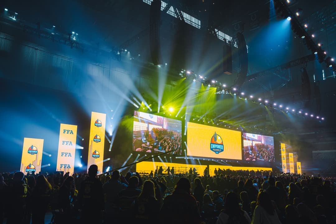Each fall, the National FFA Organization, formerly the Future Farmers of America, gathers over 70,000 attendees in Indianapolis, IN, for its annual convention and expo. EventEQ has been a proud partner in this event, managing production across key venues, including Lucas Oil Stadium and the Indiana Convention Center. This year marked a new level of accomplishment, with notable upgrades and efficiencies that distinguished it from previous conventions.